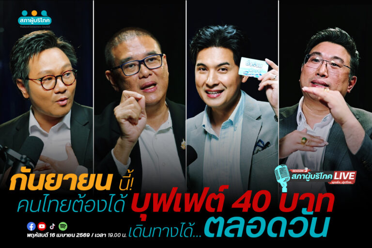 “สภาผู้บริโภค LIVE” #พูดเพื่อผู้บริโภค EP.50 กันยายนนี้ ! คนไทยต้องได้บุฟเฟต์ 40 บาท เดินทางได้ตลอดวัน ชวนพูดคุยกับ…