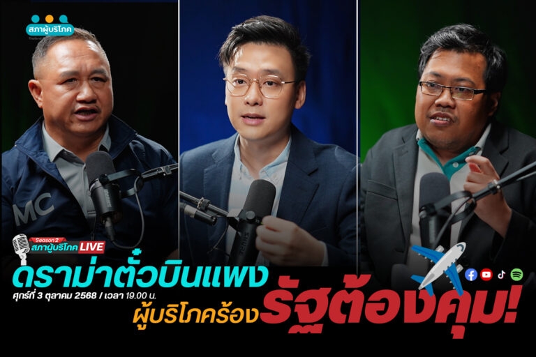 “สภาผู้บริโภค LIVE” #พูดเพื่อเปลี่ยน EP.44 : ดราม่าตั๋วบินแพง ผู้บริโภคร้องรัฐต้องคุม ! / ชวนพูดคุยกับ…