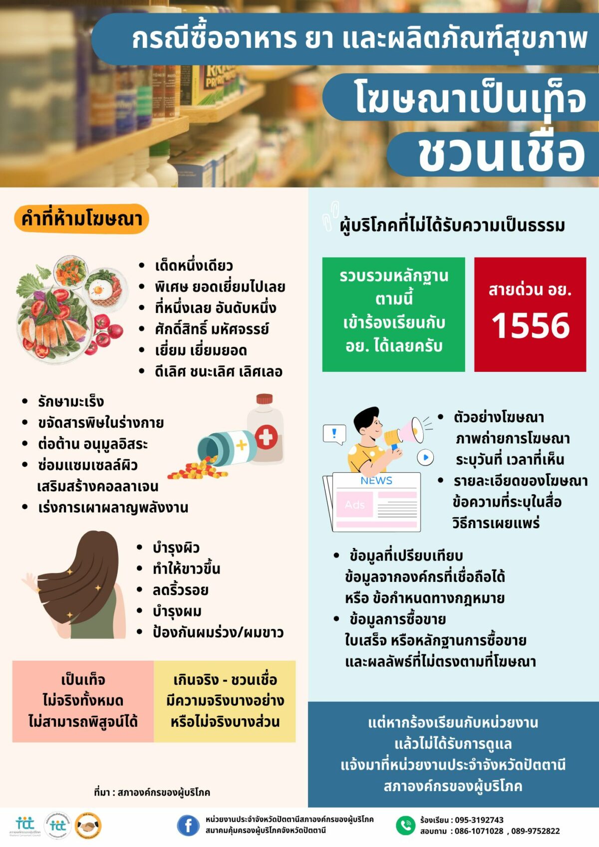 นอกจากนี้ หน่วยงานประจำจังหวัดปัตตานียังเดินหน้าสื่อสารเชิงรุก ผ่านสื่อประชาสัมพันธ์รูปแบบ One Page ที่ออกแบบให้เข้าใจง่าย เพื่อให้ผู้บริโภคเข้าถึงข้อมูลได้สะดวกยิ่งขึ้น