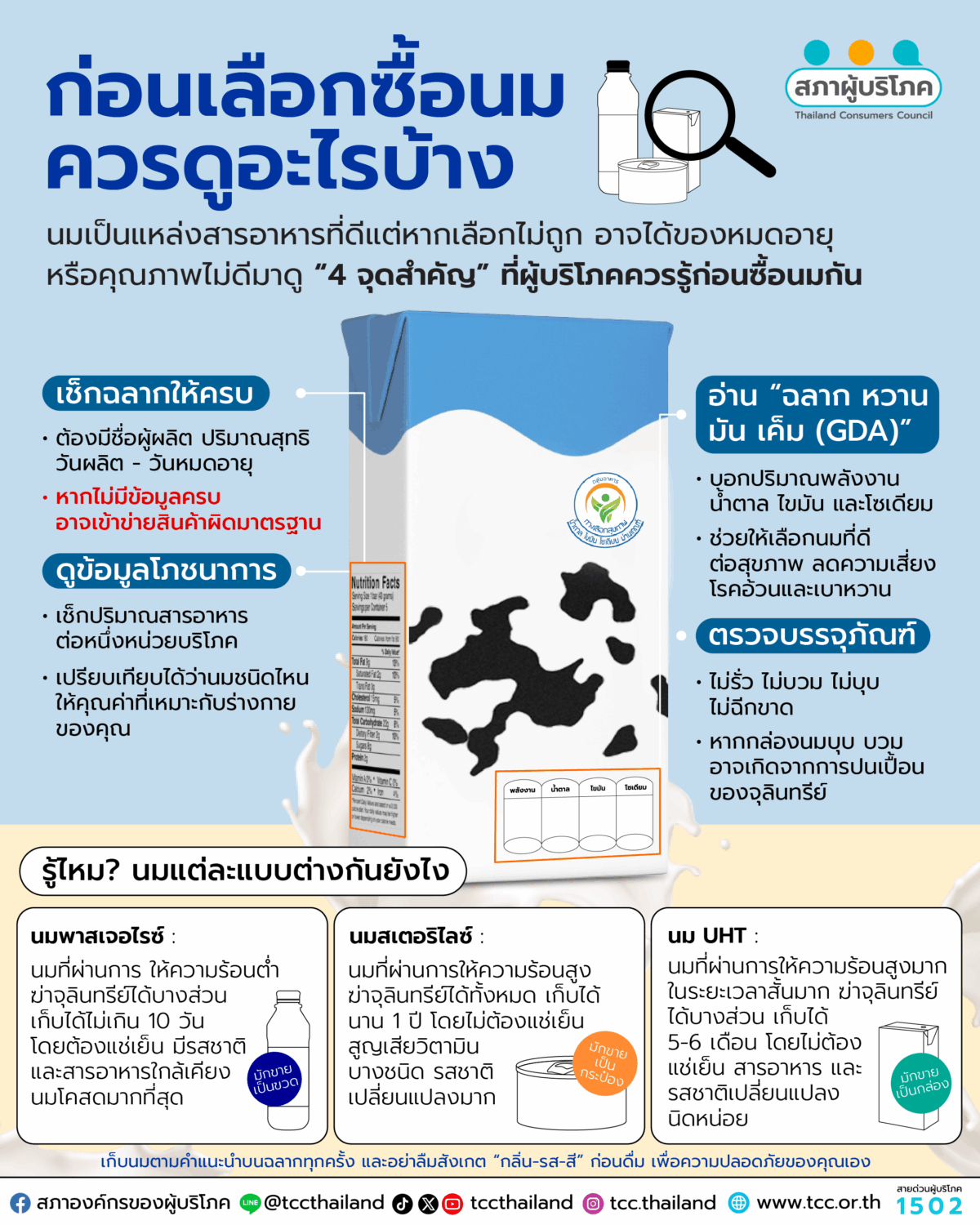 นมเป็นแหล่งสารอาหารที่ดี แต่หากเลือกไม่ถูก อาจได้ของหมดอายุหรือคุณภาพไม่ดี มาดู “4 จุดสำคัญ” ที่ผู้บริโภคควรรู้ก่อนซื้อนมกัน